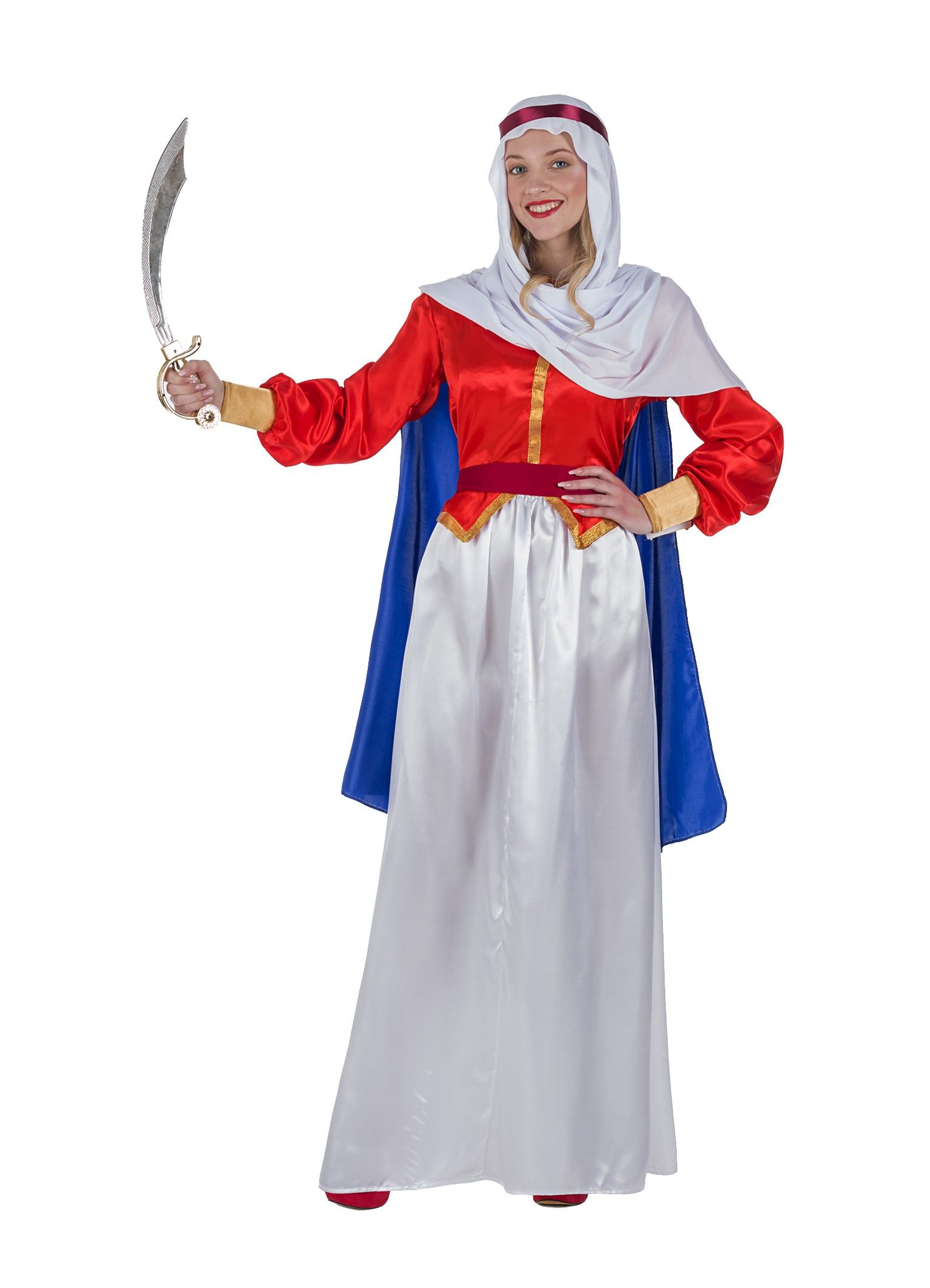 Contenido: Turbante, Cinta de la Cabeza, Capa, Blusa, Fajín, Falda