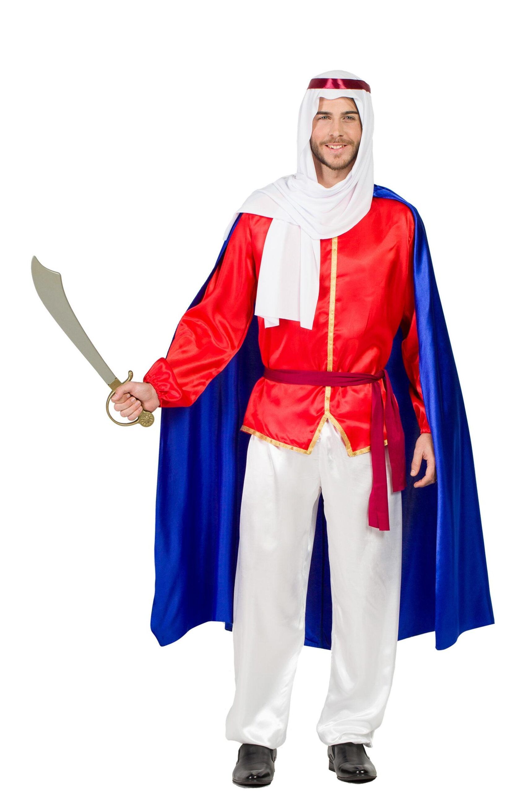Contenido: Pañuelo, cinta de la cabeza, camisa, pantalón, cinturón y capa.