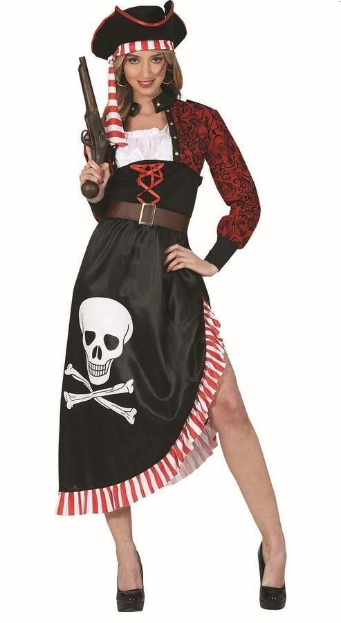 Disfraz Pirata Falda Larga Con Calavera Mujer